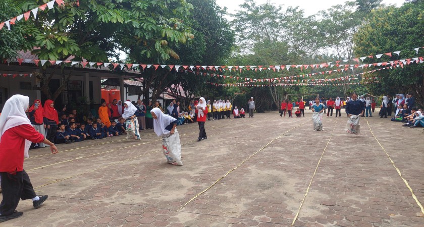 Lomba balap karung menjadi salah satu yang paling seru. Para siswa terlihat antusias berlomba, melompat-lompat dengan penuh semangat di dalam karung sambil saling bersaing untuk mencapai garis finis. Lomba tarik tambang juga tidak kalah menarik, di mana setiap tim berusaha keras untuk menarik tali dan mengalahkan tim lawan. Sorak-sorai dan teriakan semangat terdengar di seluruh lapangan sekolah, menambah meriah suasana.